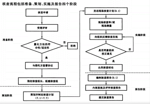 核查程序包括核查安排、建立核查技術(shù)工作組、文件評審、建立現(xiàn)場核查組、實施現(xiàn)場核查、出具《核查結(jié)論》、告知核查結(jié)果、保存核查記錄等八個步驟。