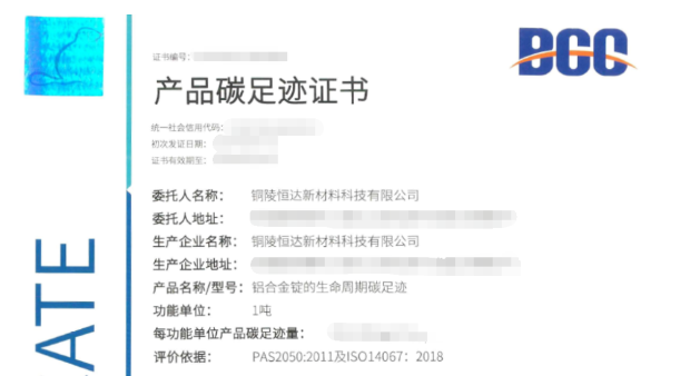 健全綠色發(fā)展,Kiwa BCC為銅陵恒達頒發(fā)產(chǎn)品碳足跡核查證書