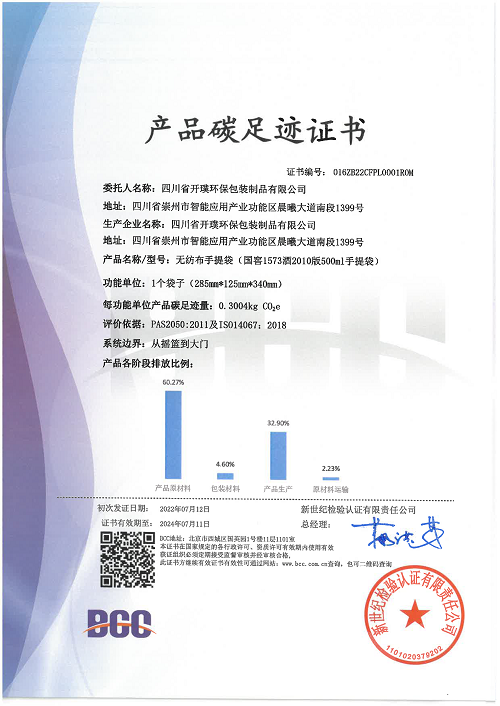 為響應(yīng)國家政策、履行社會(huì)責(zé)任,四川省開璞環(huán)保包裝制品有限公司(以下簡稱:開璞環(huán)保)日前順利通過產(chǎn)品碳足跡核查,并獲得了BCC頒發(fā)的“產(chǎn)品碳足跡證書”。